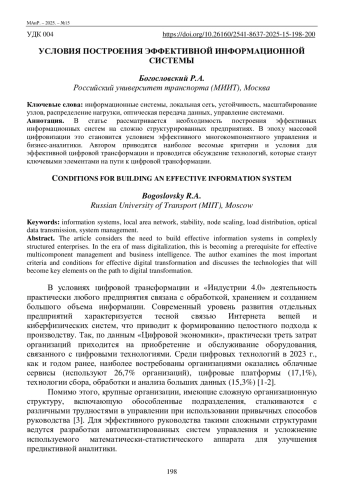 В статье рассматривается необходимость построения эффективных информационных систем на сложно структурированных предприятиях. В эпоху массовой цифровизации это становится условием эффективного многокомпонентного управления и бизнес-аналитики. Автором приводятся наиболее весомые критерии и условия для эффективной цифровой трансформации и проводится обсуждение технологий, которые станут ключевыми элементами на пути к цифровой трансформации.