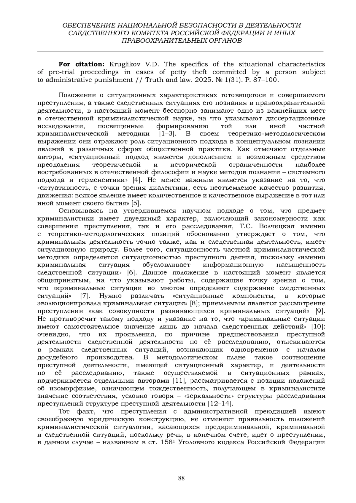 11. Варданян А.В. Учение о следственной ситуации как методологическая основа для формирования следственных ситуаций, типичных для первоначального этапа расследования преступлений в сфере земельных правоотношений // Философия права. 2013. № 6 (61). С. 75-79. EDN: RUAVKL