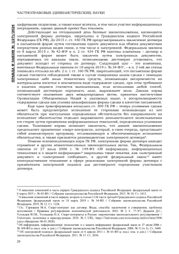 Стремительное развитие технологий репрезентирует самую яркую черту современного мира, обеспечивая оперативное взаимодействие как между институциональными единицами политических и экономических секторов, так и непосредственно между субъектами общественных отношений, в том числе гражданско-правовых. Быстрая трансформация информационных технологий, как правило, опережает закрепление важных положений в законодательстве, и в результате правовая регламентация отстает от регулирования правоотношений по поводу использования новых технологий, однако внедрение новых норм и изменение действующих, безусловно, должно быть системным и продуманным.