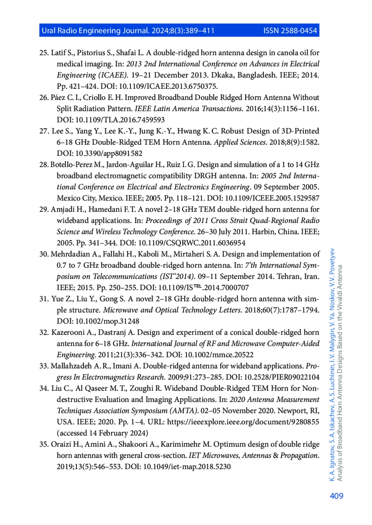 40. Калиничев В. И., Калошин В. А. Широкополосный диэлектрический рупорный излучатель. Журнал радиоэлектроники. 2007;(12). URL: http://jre.cplire.ru/jre/dec07/index_e.html (дата обращения 14.02.24).