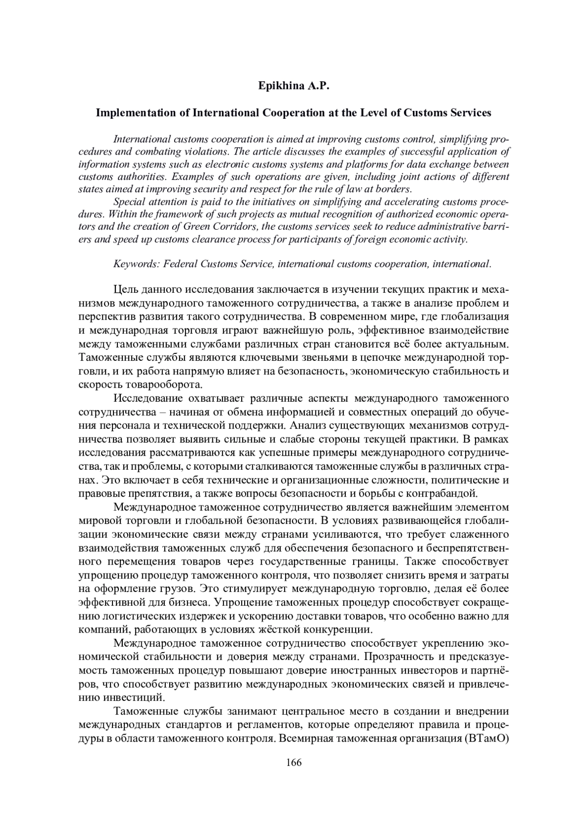 8. Шпак, А. С. Международное таможенное сотрудничество: проблемы и перспективы развития / А. С. Шпак, С. А. Беляков, М. А. Крикунова // Экономика и предпринимательство. - 2023. - № 4(153). - С. 160-164. DOI: 10.34925/EIP.2023.153.4.027 EDN: SVJXHG