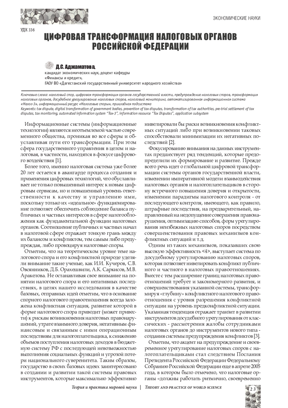 НАЛОГОВЫЙ СПОР, ЦИФРОВАЯ ТРАНСФОРМАЦИЯ ОРГАНОВ ГОСУДАРСТВЕННОЙ ВЛАСТИ, ПРЕДУПРЕЖДЕНИЕ НАЛОГОВЫХ СПОРОВ, ТРАНСФОРМАЦИЯ НАЛОГОВЫХ ОРГАНОВ, ДОСУДЕБНОЕ УРЕГУЛИРОВАНИЕ НАЛОГОВЫХ СПОРОВ, НАЛОГОВЫЙ МОНИТОРИНГ, АВТОМАТИЗИРОВАННАЯ ИНФОРМАЦИОННАЯ СИСТЕМА «НАЛОГ-3», ИНФОРМАЦИОННЫЙ РЕСУРС «НАЛОГОВЫЕ СПОРЫ», ПРИКЛАДНАЯ ПОДСИСТЕМА