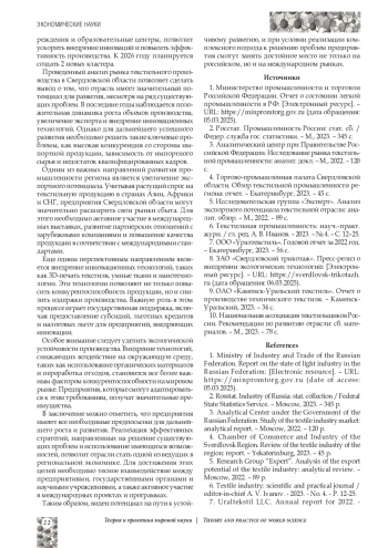 4. Торгово-промышленная палата Свердловской области. Обзор текстильной промышленности региона: отчет. - Екатеринбург, 2023. - 45 с.