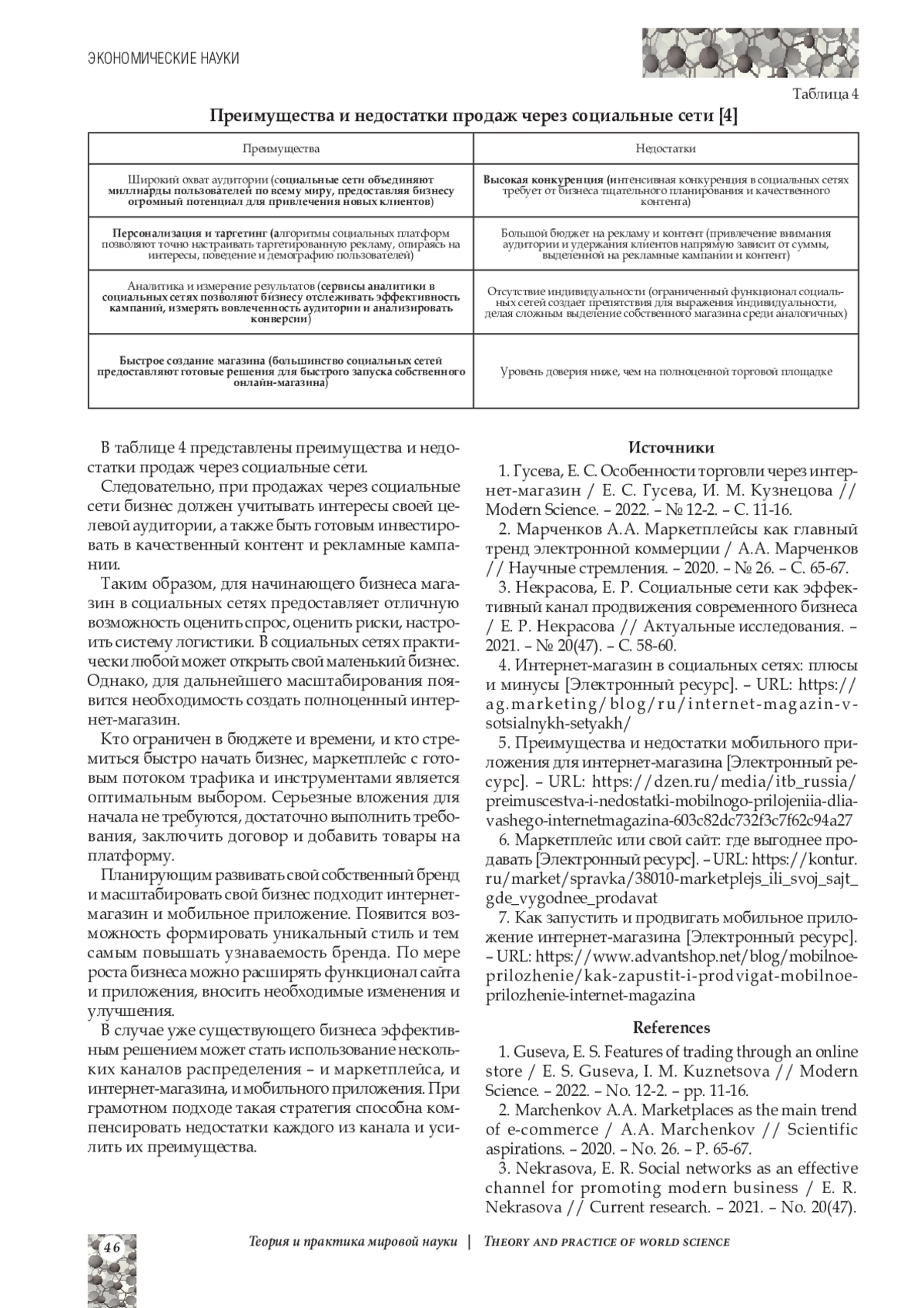 1. Гусева, Е. С. Особенности торговли через интернет-магазин / Е. С. Гусева, И. М. Кузнецова // Modern Science. - 2022. - № 12-2. - С. 11-16. EDN: GHWETG