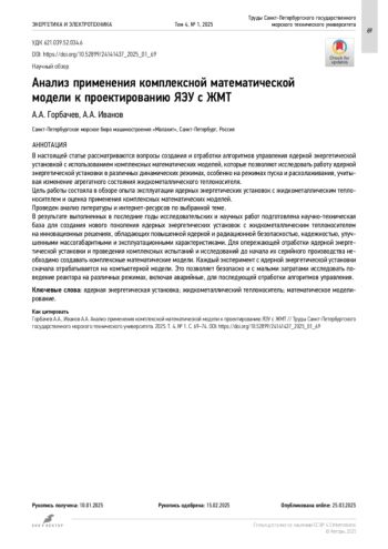1. Федорович Е.Д., Курдюков И.И. Аналитический обзор опыта эксплуатации и современных разработок ядерных энергетических установок средней и малой мощности с жидкометаллическим теплоносителем. Часть 2 // Технологии обеспечения жизненного цикла ЯЭУ. 2020. № 3. С. 9–31. EDN: RHOORV