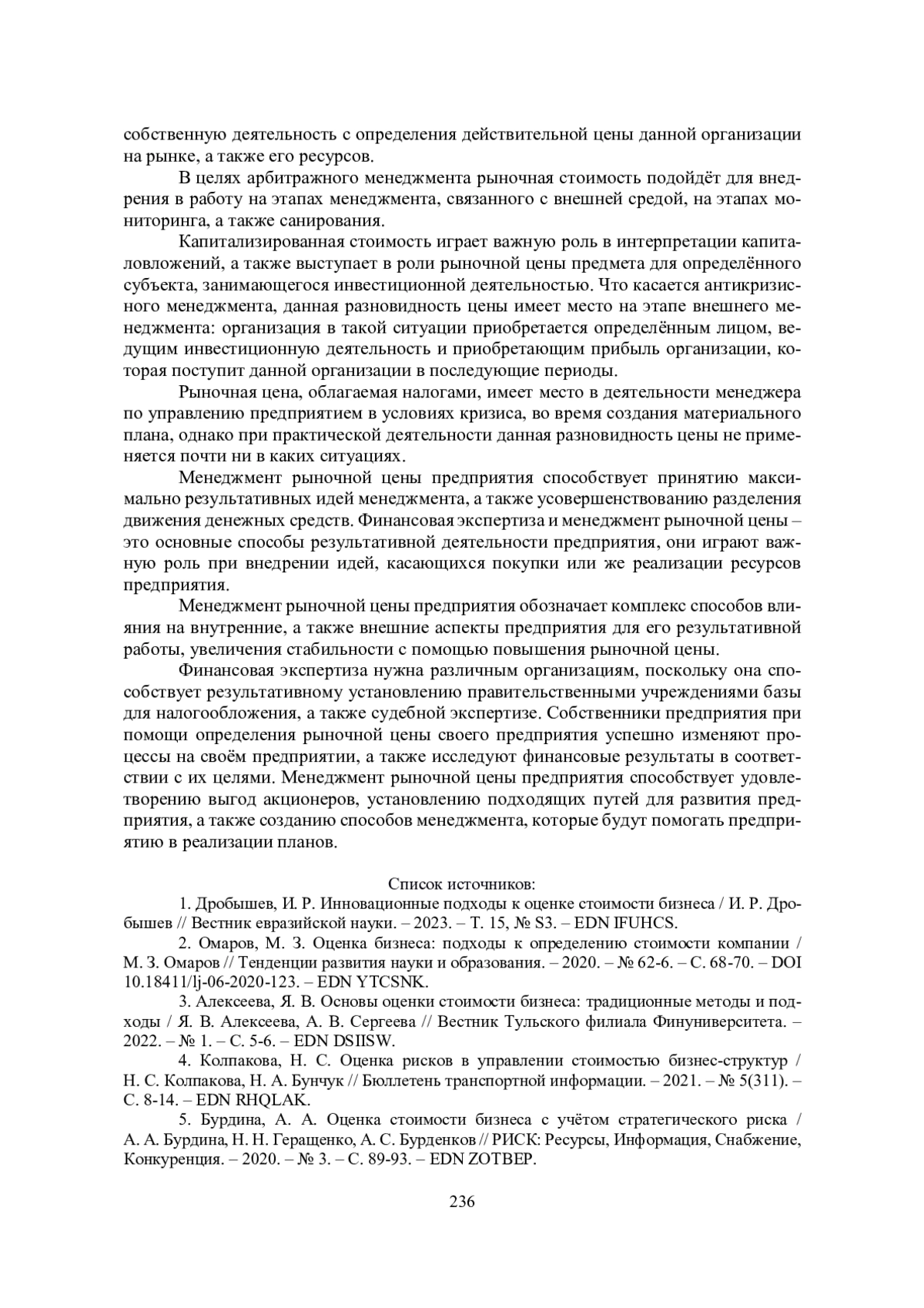 1. Дробышев, И. Р. Инновационные подходы к оценке стоимости бизнеса / И. Р. Дробышев // Вестник евразийской науки. - 2023. - Т. 15, № S3. EDN: IFUHCS