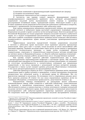 7. Таранюк Ю.В., Ембулаева Н.Ю. Практика разрешения юридических коллизий в системе Российского права // Современный ученый. 2023. № 1. С. 329-335. EDN: ANIVXG