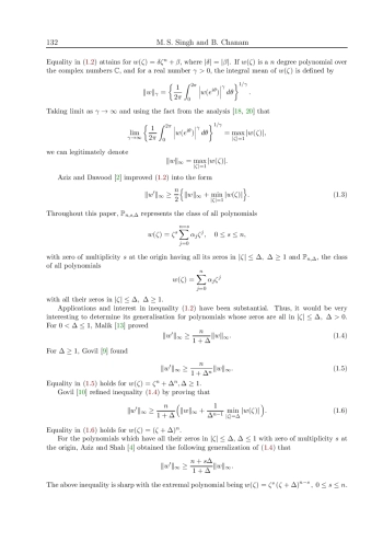 1. Aziz A.Integral mean estimates for polynomials with restricted zeros. J. Approx. Theory, 1988. Vol. 55, No. 2. P. 232-239. DOI: 10.1016/0021-9045(88)90089-5