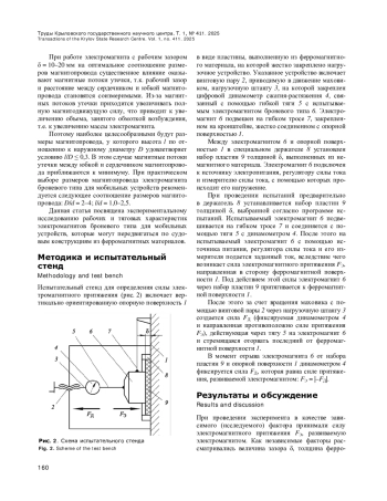 Материалы и методы. Модельный эксперимент по определению рабочих параметров электромагнитов броневого типа, определяющих характер их взаимодействия с ферромагнитными судовыми поверхностями.