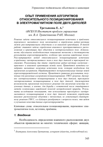 13. ТХОРЕНКО М.Ю., КАРШАКОВ Е.В., ПАВЛОВ Б.В. и др Алгоритм позиционирования подвижного объекта в низко-частотном электромагнитном поле // Автоматика и теле-механика. – 2015. – №11. – С. 160–173.
