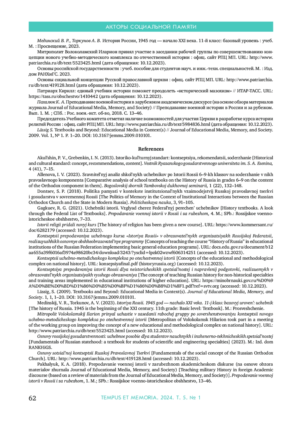16. Патриарх Кирилл: единый учебник истории поможет преодолеть “исторический мазохизм” // ИТАР-ТАСС. URL: https://tass.ru/obschestvo/1410442 (дата обращения: 10.12.2023).