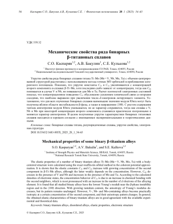 26. Никонов А.Ю., Жармухамбетова А.М., Скрипняк Н.В., Пономарева А.В., Абрикосов И.А., Баранникова С.А., Дмитриев А.И. Расчет механических свойств ОЦК-сплавов Ti-Nb // Конф. АИП. Учеб., 2015, т. 2. 1683, с. 020165. DOI: 10.1063/1.4932855 .