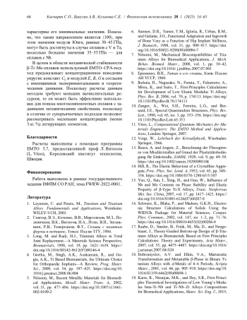 24. Морено Дж.Дж., Папагеоргиу Д.Г., Евангелакис Г.А. и Лекка Ч.Э. Ab initio Исследование структурных и механических изменений сплавов Ti-Nb, J. Appl. Физ., 2018, т. 2. 124, с. 245102. DOI: 10.1063/1.5025926