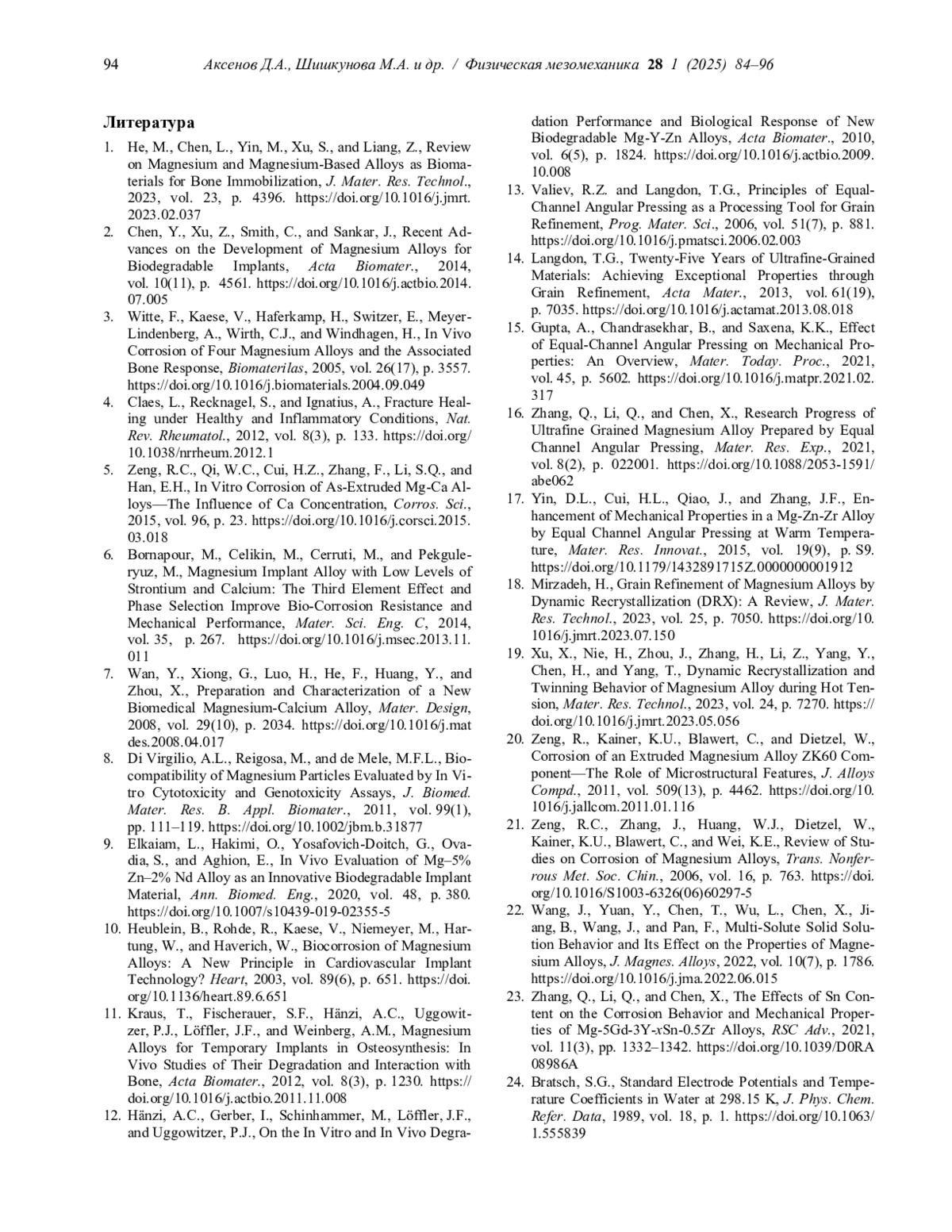 1. He, M., Chen, L., Yin, M., Xu, S., and Liang, Z., Review on Magnesium and Magnesium-Based Alloys as Biomaterials for Bone Immobilization, J. Mater. Res. Technol., 2023, vol. 23, p. 4396. DOI: 10.1016/j.jmrt.2023.02.037