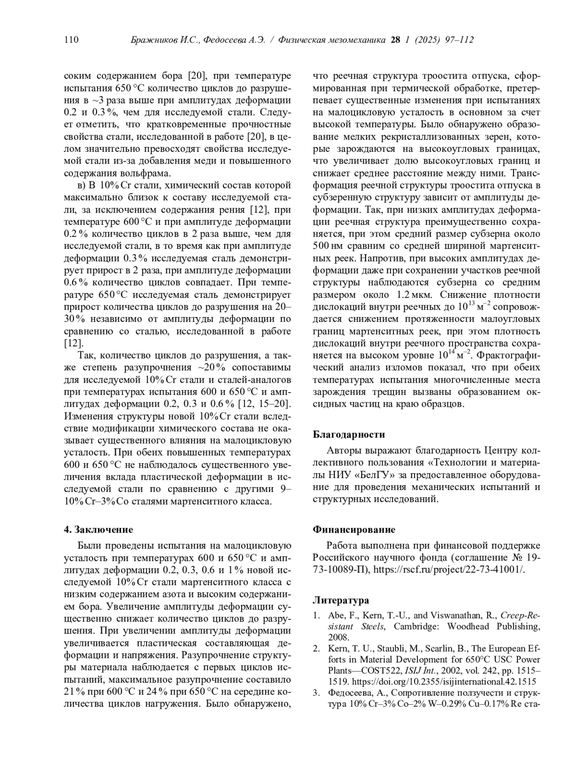 12. Mishnev, R., Dudova, N., and Kaibyshev, R., Low Cycle Fatigue Behavior of a 10Cr-2W-Mo-3Co-NbV Steel, Int. J. Fatigue, 2016, vol. 83, pp. 344-355.