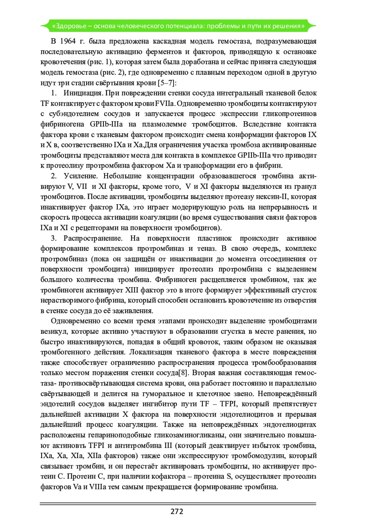 7. Ahmad S.S., London F.S., Walsh P.N. The assembly of the factor X-activating complex on activated human platelets // Journal of Thrombosis and Haemostasis. 2003. Vol. 1, № 1.