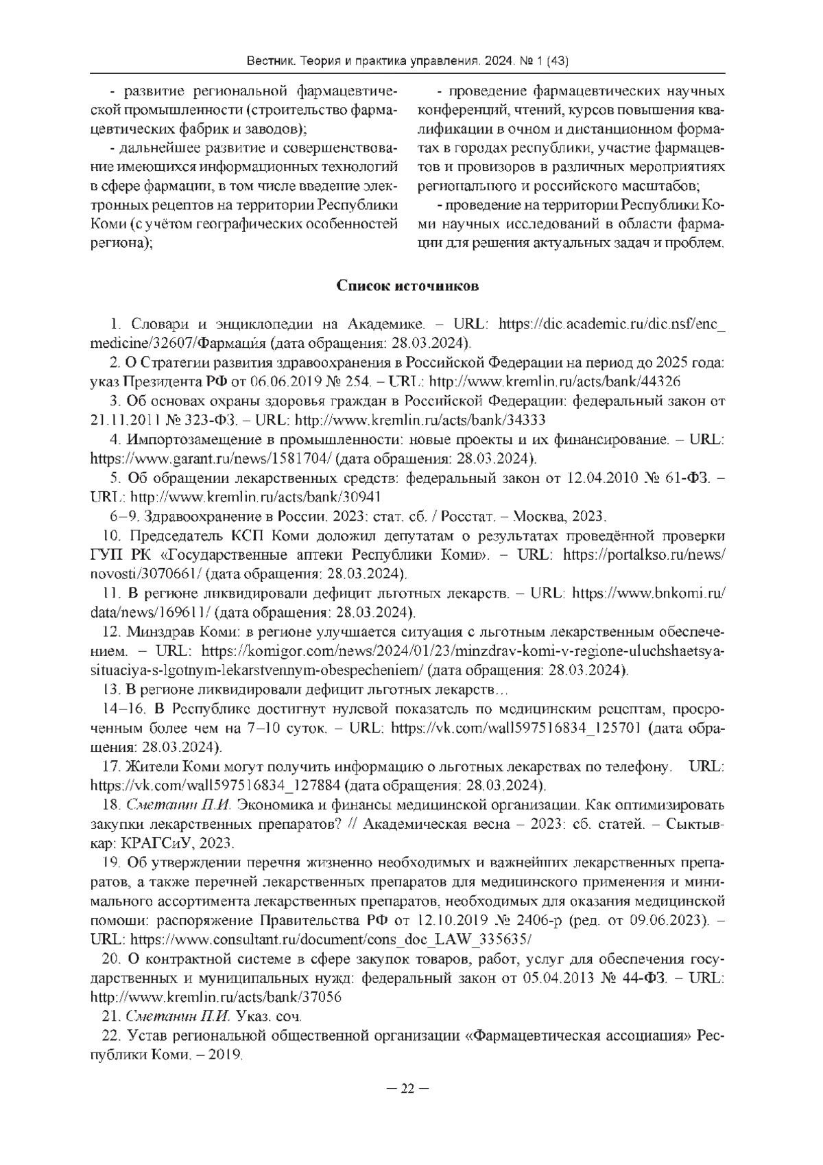 8. Минздрав Коми: в регионе улучшается ситуация с льготным лекарственным обеспечением. - URL: https://komigor.com/news/2024/01/23/minzdrav-komi-v-regione-uluchshaetsya-situaciya-s-lgotnym-lekarstvennym-obespecheniem/(дата обращения: 28.03.2024).