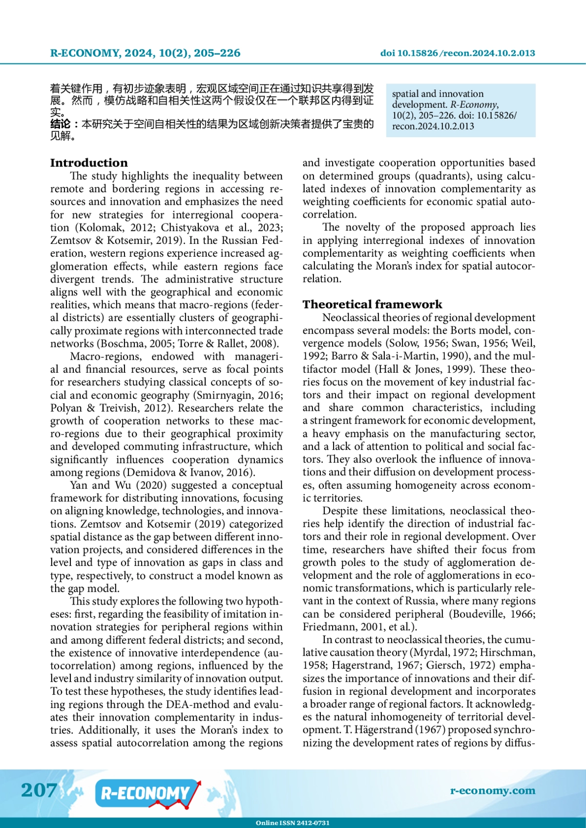 50. Mosalov A. I. (2022). Optimal’nyye prostranstvennyye formaty mezhregional’nogo ekonomicheskogo sotrudnichestva v ramkakh innovatsionnoy ekonomiki, Ekonomika regiona, 18, 3, 638-652. DOI: 10.17059/ekon.reg.2022-3-2 EDN: EEPJWN
