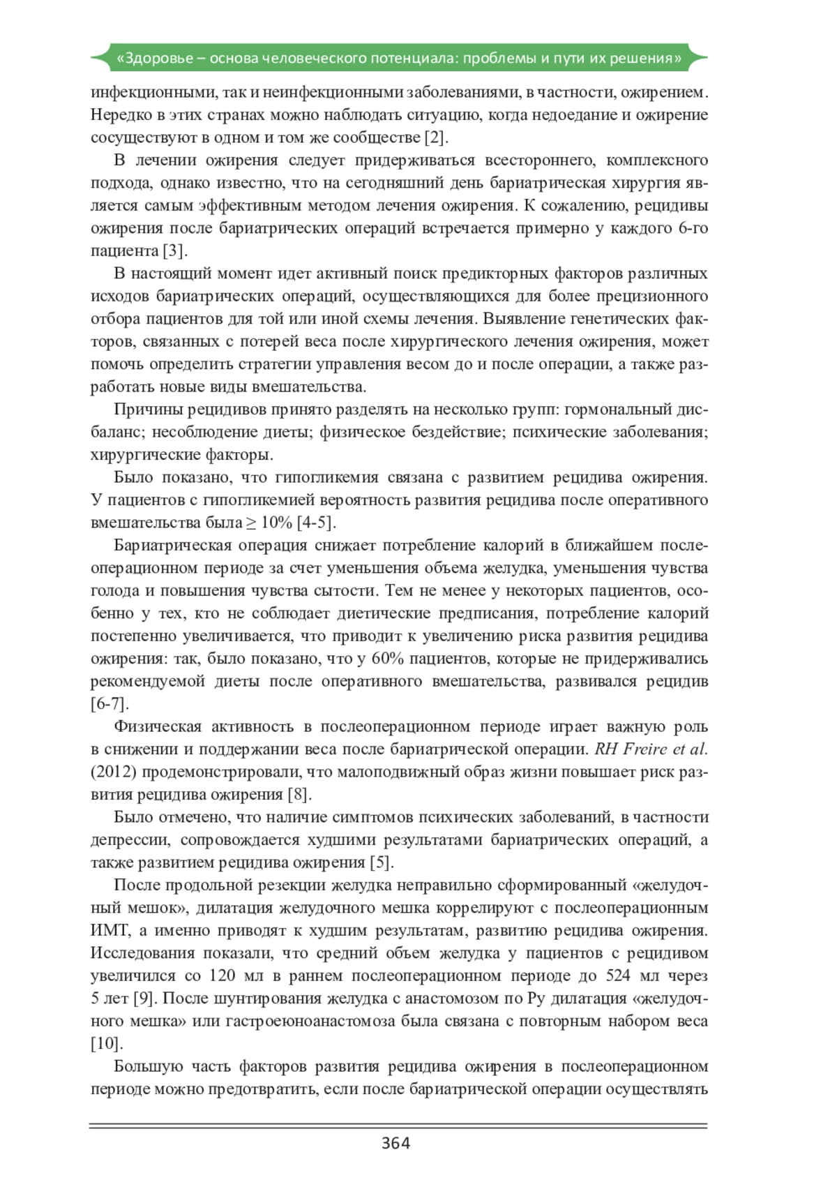 7. Karmali S, Brar B, Shi X, Sharma AM, de Gara C, Birch DW. Weight recidivism post-bariatric surgery: a systematic review. Obesity surgery. 2013 Nov;23:1922-33. EDN: KFDCZZ