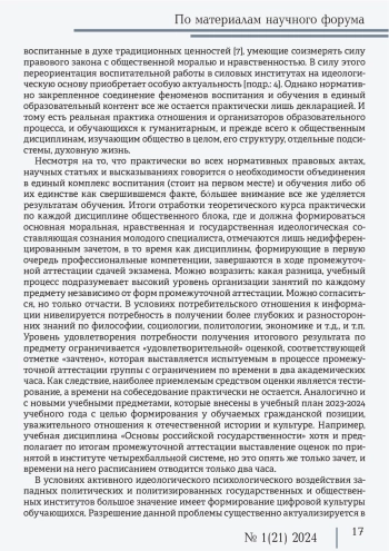 Работа посвящена анализу значимости обучения и воспитания как элементов единого образовательного процесса в условиях образовательной организации органов внутренних дел. Обращено внимание, с одной стороны, на ценность данного подхода в подготовке сотрудников органов внутренних дел в контексте современных военно-политических реалий, с другой - на реально имеющий место дисбаланс между признанием ценности обучения и воспитания в существующем образовательном процессе.