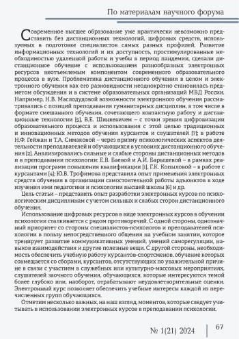 Современное высшее образование уже практически невозможно представить без дистанционных технологий, цифровых средств, используемых в подготовке специалистов самых разных профилей. Развитие информационных технологий и их доступность, простимулированные необходимостью удаленной работы и учебы в период пандемии, сделали дистанционное обучение с использованием разнообразных электронных ресурсов неотъемлемым компонентом современного образовательного процесса в вузе. Проблематика дистанционного обучения в целом и электронного обучения как его разновидности неоднократно становилась предметом обсуждения и в системе образовательных организаций МВД России.