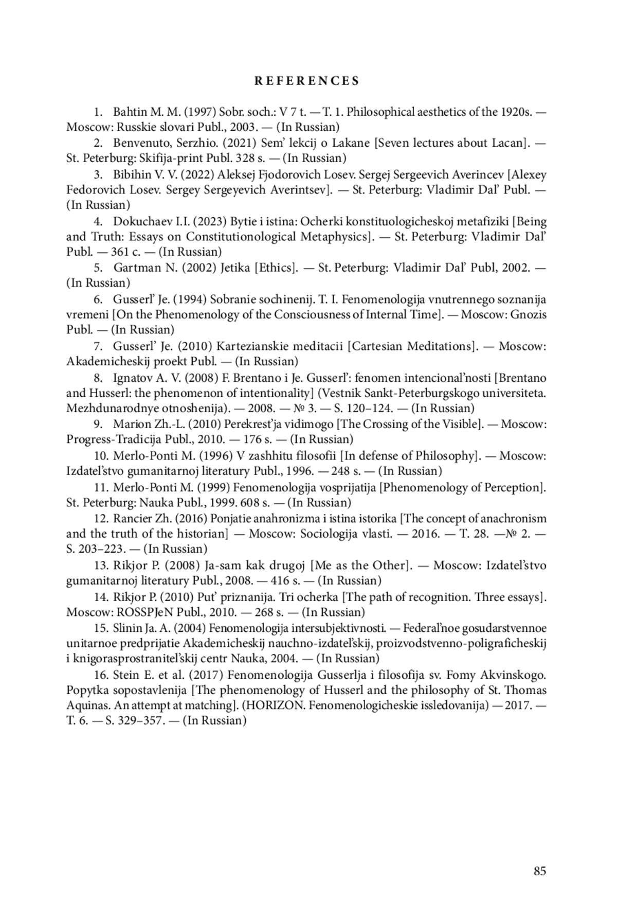 15. Слинин Я. А. Феноменология интерсубъективности. - Федеральное государственное унитарное предприятие Академический научно-издательский, производственно-полиграфический и книгораспространительский центр Наука, 2004. EDN: QODEJX