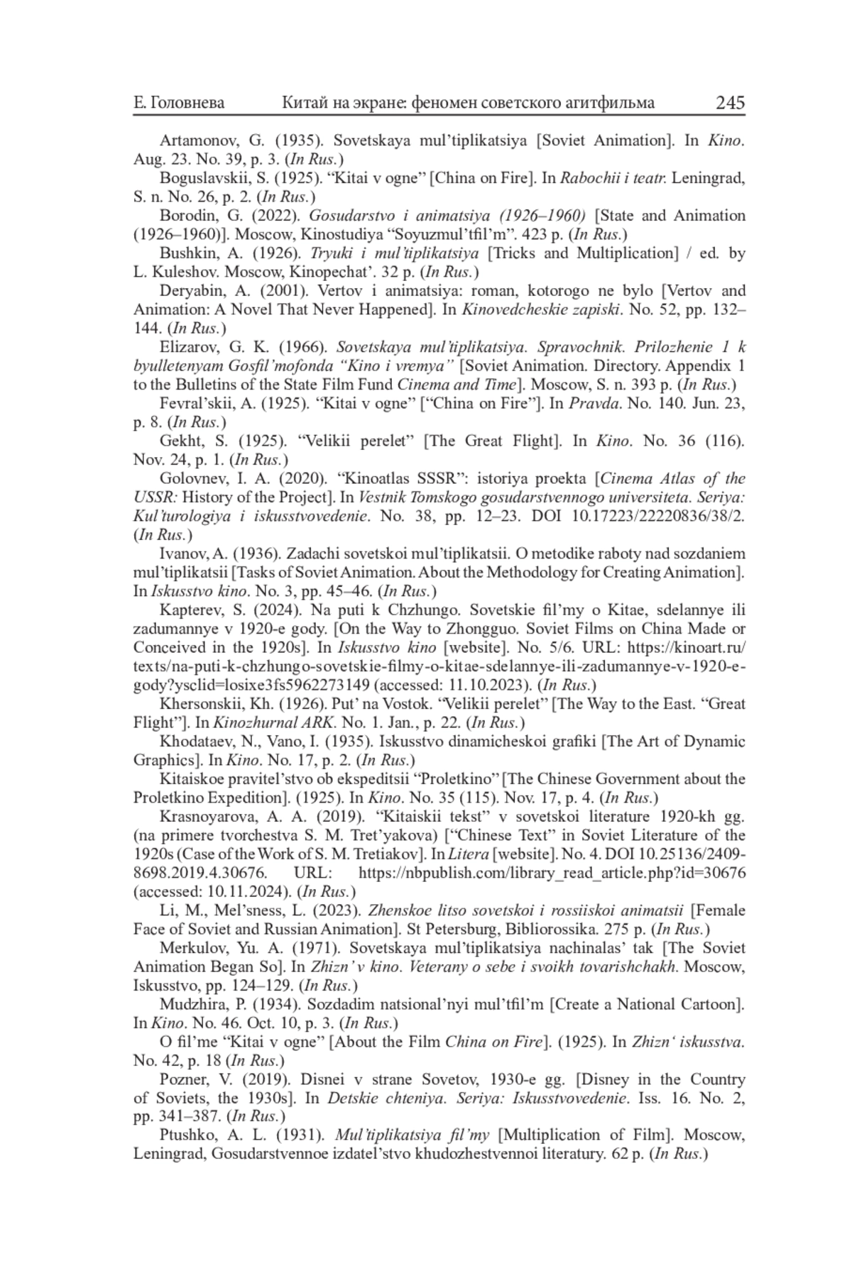 8. Головнев И. А. “Киноатлас СССР”: история проекта // Вестник Томского государственного университета. Сер.: Культурология и искусствоведение. 2020. № 38. С. 12-23. DOI: 10.17223/22220836/38/2 EDN: WUCTEQ