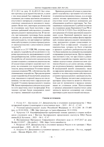 1. Рогова И.Г., Кругликова Д.А. Доказательства в уголовном судопроизводстве // Международный журнал гуманитарных и естественных наук. - 2019. - № 1-2. - С.169.