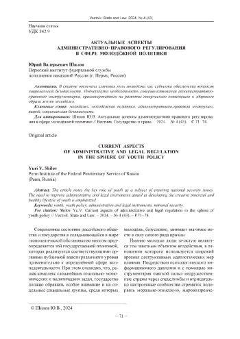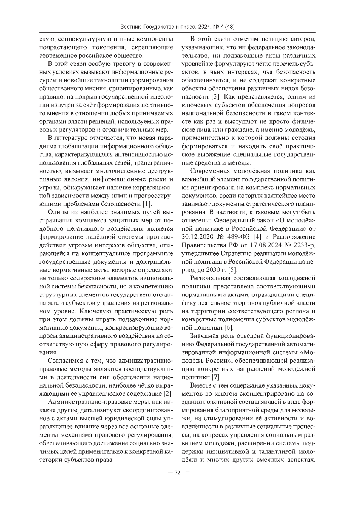 4. О молодёжной политике в Российской Федерации: Федеральный закон от 30.12.2020 № 489-ФЗ (ред. от 22.04.2024) // Собр. законодательства РФ. - 2021. - № 1 (ч!). - Ст.28.