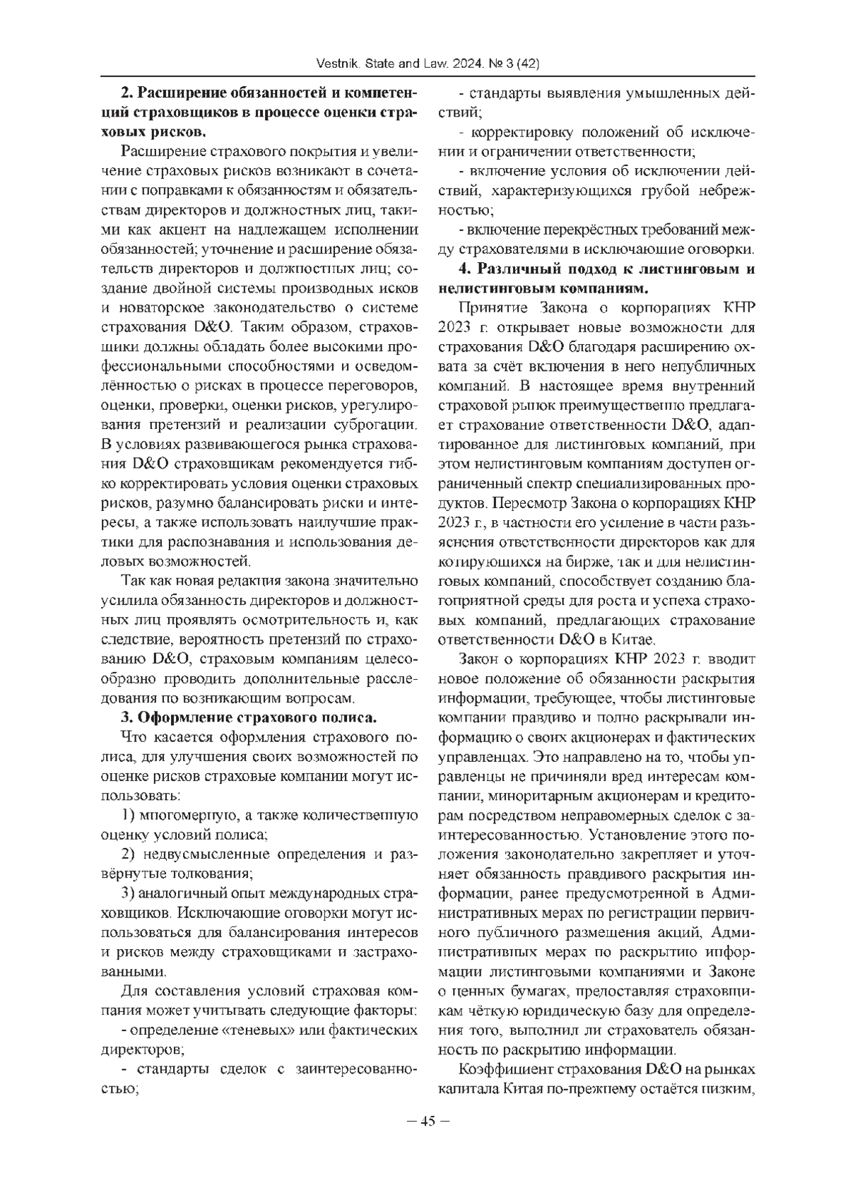 Статья: ОПЫТ КИТАЯ В СТРАХОВАНИИ ОТВЕТСТВЕННОСТИ ДИРЕКТОРОВ: НОВЫЙ ПОДХОД В ЗАКОНЕ О КОРПОРАЦИЯХ КИТАЙСКОЙ НАРОДНОЙ РЕСПУБЛИКИ 2023 Г (2024)