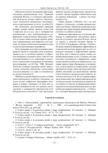 1. Salvi G. Discrezionalita, responsabilita, legittimazione democratica del Pubblico Ministero // Rivista trimestrale. - 2021. - № 2. - URL: www.questionegiustizia.it/data/rivista/articoli/934/2-2021_qg_salvi.pdf.