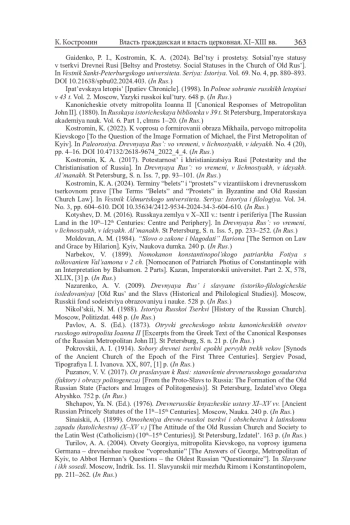 9. Гайденко П. И., Костромин К. А. Бельцы и простецы. Социальные статусы в церкви Древней Руси // Вестник С-Петерб. ун-та. Сер.: История. 2024. Т. 69, № 4. С. 880-893. DOI: 10.21638/spbu02.2024.403 EDN: DXUQER