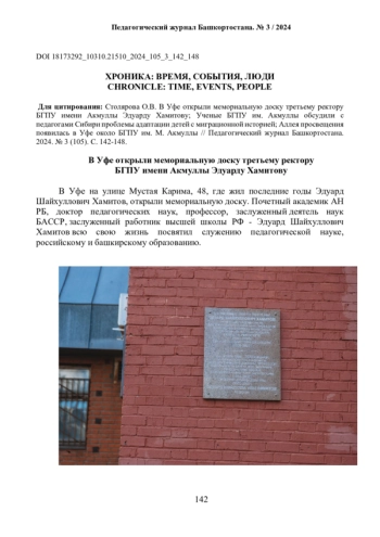В Уфе на улице Мустая Карима, 48, где жил последние годы Эдуард Шайхуллович Хамитов, открыли мемориальную доску. Почетный академик АН РБ, доктор педагогических наук, профессор, заслуженный деятель наук БАССР, заслуженный работник высшей школы РФ - Эдуард Шайхуллович Хамитов всю свою жизнь посвятил служению педагогической науке, российскому и башкирскому образованию.
