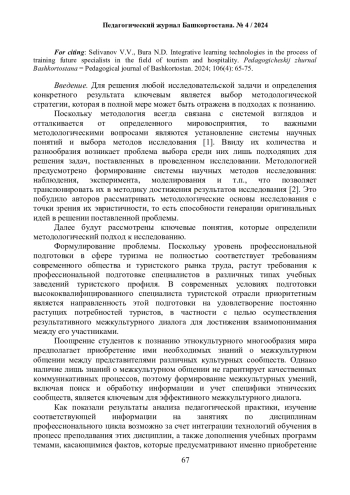 В статье обосновывается необходимость применения интегративных технологий обучения с целью формирования у студентов межкультурных умений профессионального общения в процессе подготовки будущих специалистов сферы туризма. Межкультурные умения рассматриваются как способность применять новый опыт и уже приобретенный в новой ситуации, завоевать доверие и уважение человека другой культуры, осуществлять межкультурное взаимодействие на уровне личности, группы, применять знания культурных особенностей в процессе коммуникации и т. п., поэтому их формирование предполагает применение таких технологий обучения, которые бы отражали их содержание.