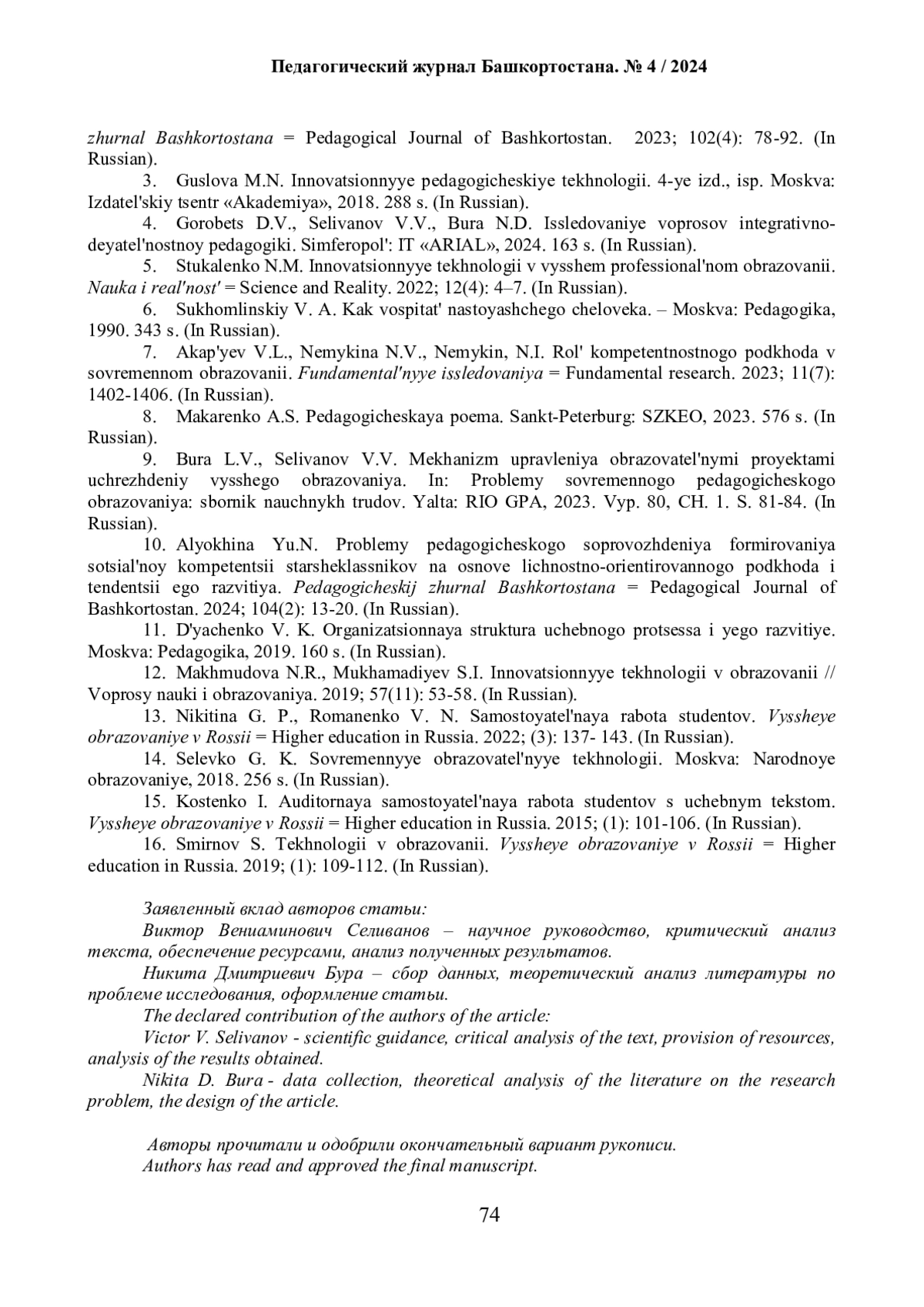 13. Никитина Г. П., Романенко В. Н. Самостоятельная работа студентов // Высшее образование в России. – 2022. – № 3. – С. 137- 143.