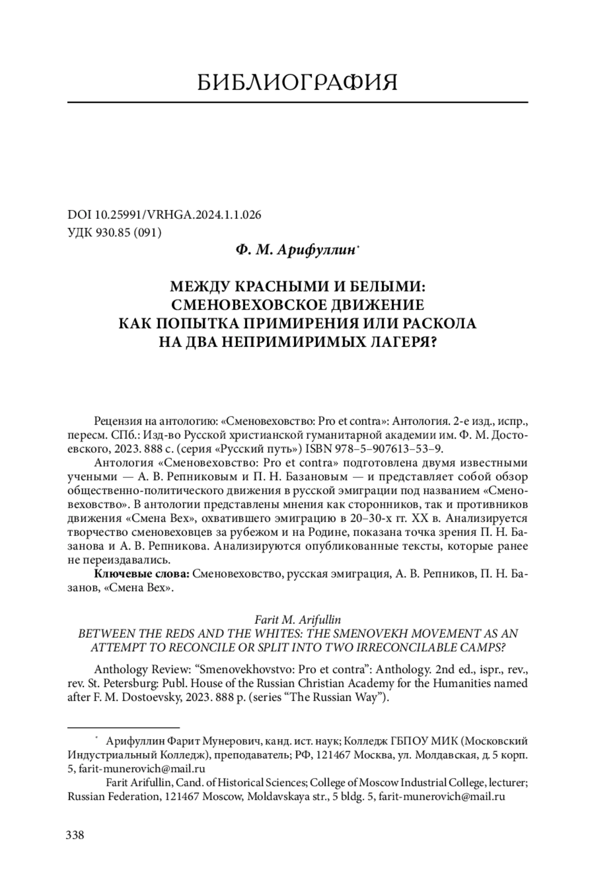 Антология «Сменовеховство: Pro et contra», изданная в 2020 г. и вновь вышедшая в 2023 г., подготовлена двумя известными учеными: историком-архивистом, доктором исторических наук Александром Витальевичем Репниковым, — в частности, он занят исследованием творчества монархиста В. В. Шульгина и правого сменовеховца Н. В. Устрялова, — и профессором Санкт- Петербургского Государственного Института Культуры Петром Николаевичем Базановым.