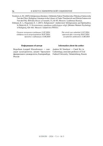 7. Циннбауэр Б., Паргамент К. Религиозность и духовность // Современная западная психология религии: хрестоматия. М.: Издательство ПСТГУ, 2017. С. 426-461.