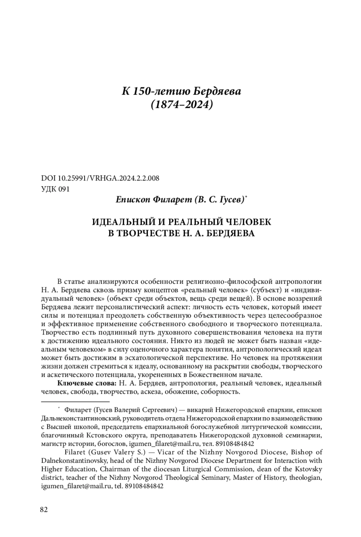 1. Андросенко С. В. Соборность как антропологическая и экклесиологическая категория в трудах Н. А. Бердяева // Вестник Свято-Филаретовского института. М., 2021. № 40. С. 9-34. EDN: CBGIKX