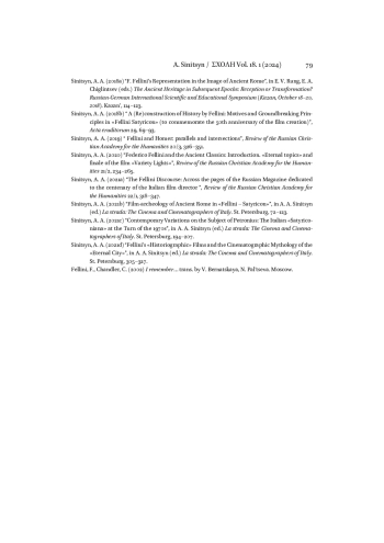 - Синицын, A. A. (2021b) “Кино-археология античного Рима в «Сатириконе Феллини»”, в кн. А. А. Синицын (ред.) La strada: Кино и кинематографисты Италии: коллективная монография. Санкт Петербург, 72–123.