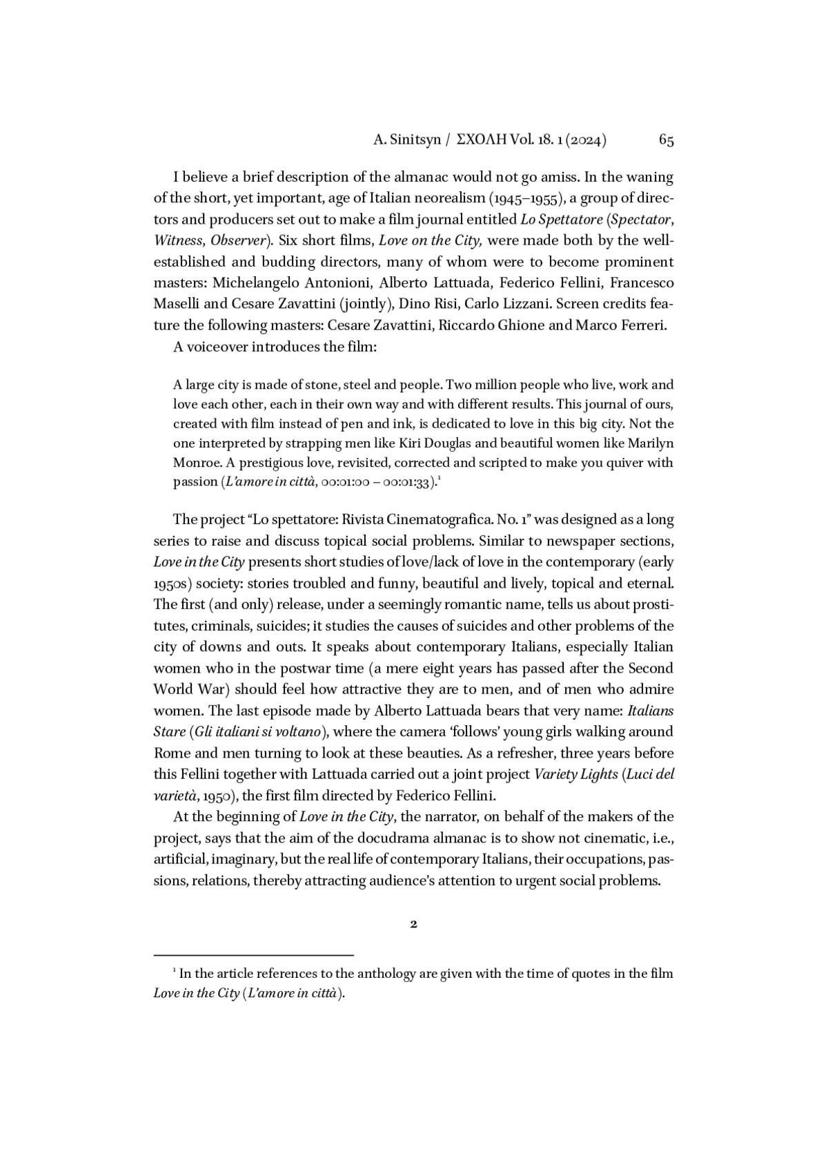 - Синицын, A. A. (2018b) “Опыт (ре)конструкции истории Федерико Феллини: О мотивах и новаторских принципах в «Fellini Satyricon» (К 50-летию создания кино- картины)”, Acta eruditorum 29, 69–93.