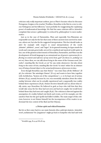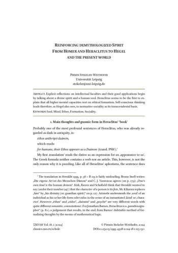 Explicit reflections on intellectual faculties and their good applications begin by talking about a divine spirit and a human soul. Heraclitus seems to be the first to explain that all higher mental capacities rest on ethical formation. Self-conscious thinking leads therefore, as Hegel also sees, to normative sociality as its transcendental basis.