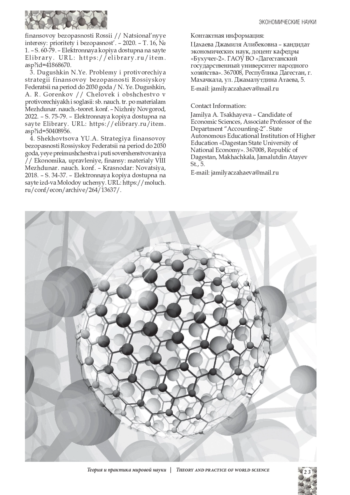 3. Дугушкин Н.Е. Проблемы и противоречия стратегии финансовой безопасности Российской Федерации на период до 2030 года / Н. Е. Дугушкин, А. Р. Горенков // Человек и общество в противоречиях и согласии: сб. науч. тр. по материалам Междунар. науч.-теорет. конф. - Нижний Новгород, 2022. - С. 75-79. - Электронная копия доступна на сайте Elibrary. URL: item.asp?id=50408956. EDN: RWWPUM