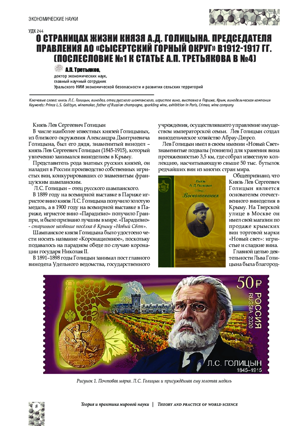 В статье отмечается, что в числе наиболее известных князей Голицыных, из близкого окружения Александра Дмитриевича Голицына, был его дядя, знаменитый винодел - князь Лев Сергеевич Голицын (1845-1915), который увлеченно занимался виноделием в Крыму. Представитель рода знатных русских князей, он наладил в России производство собственных игристых вин, конкурировавших со знаменитым французским шампанским. Считается, что Л. С. Голицын - отец русского шампанского. В приведенном материале подробно раскрывается деятельность Льва Голицына в качестве основателя отечественного виноделия в Крыму.