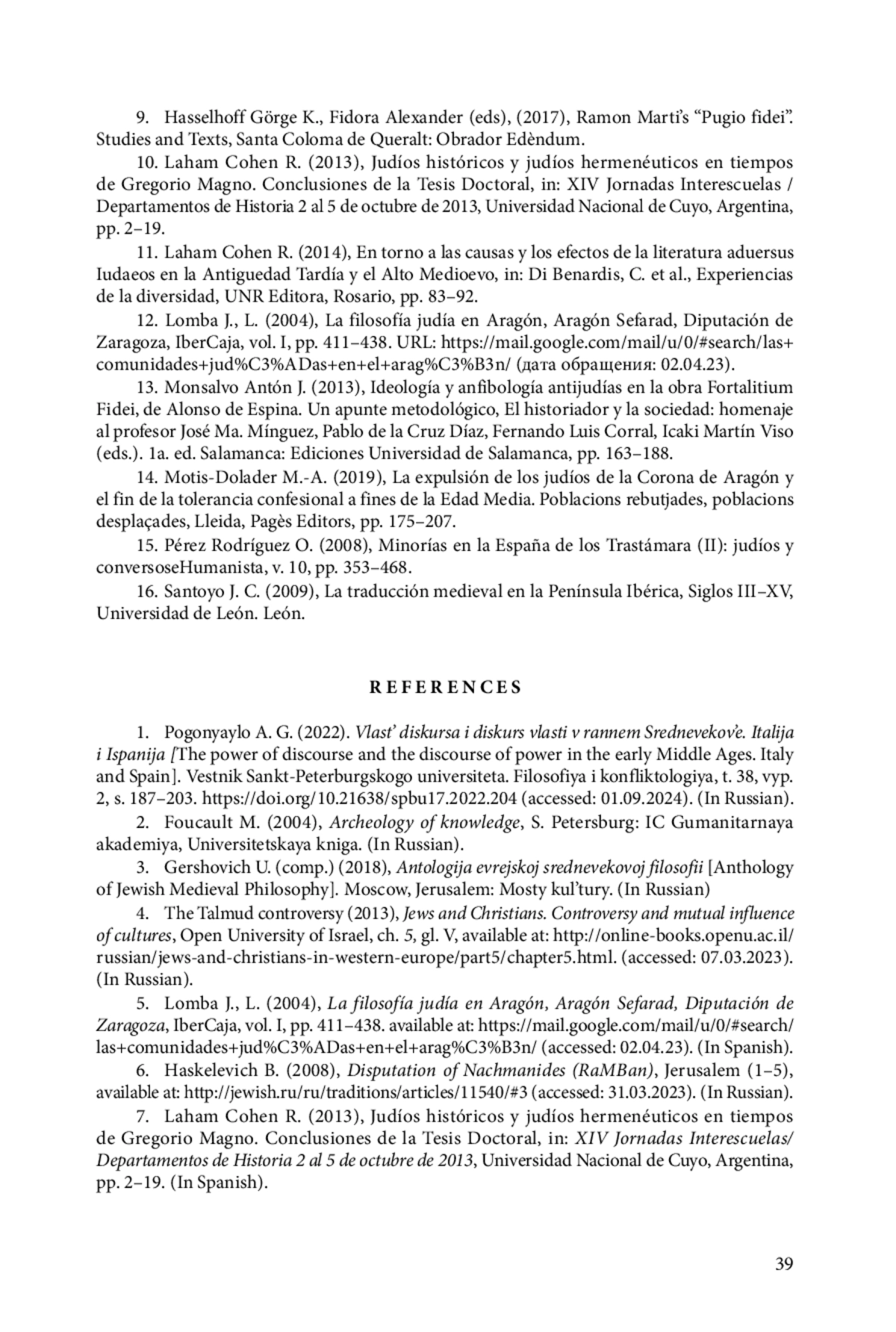 2. Погоняйло А. Г. Власть дискурса и дискурс власти в раннем Средневековье. Италия и Испания // Вестник Санкт-Петербургского университета. Философия и конфликтология. 2022. Т. 38, вып. 2. С. 187-203. EDN: ZKDPCM