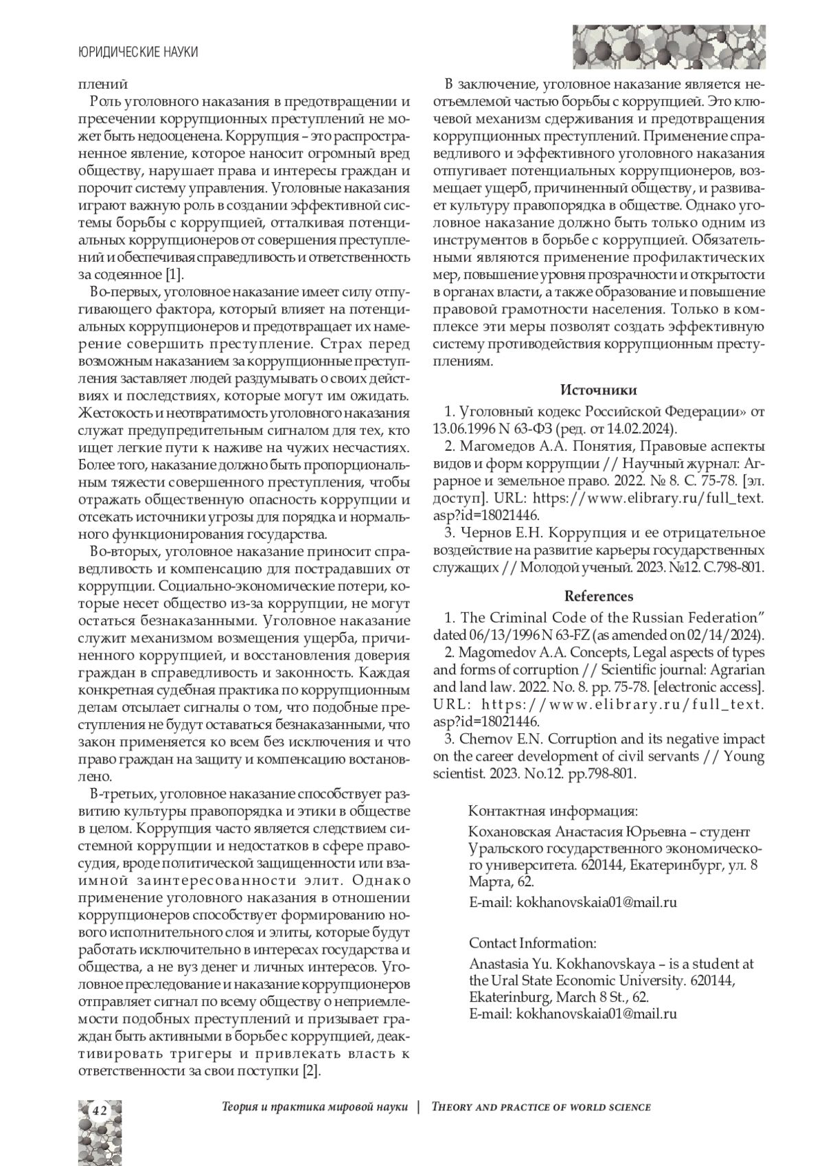 3. Чернов Е.Н. Коррупция и ее отрицательное воздействие на развитие карьеры государственных служащих // Молодой ученый. 2023. №12. С.798-801.