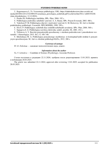 8. Трифонова А. В. Развитие понятийных способностей в старшем подростковом и юношеском возрастах //Акмеология. 2015. № 2. С. 144-148. EDN: TTYFXJ
