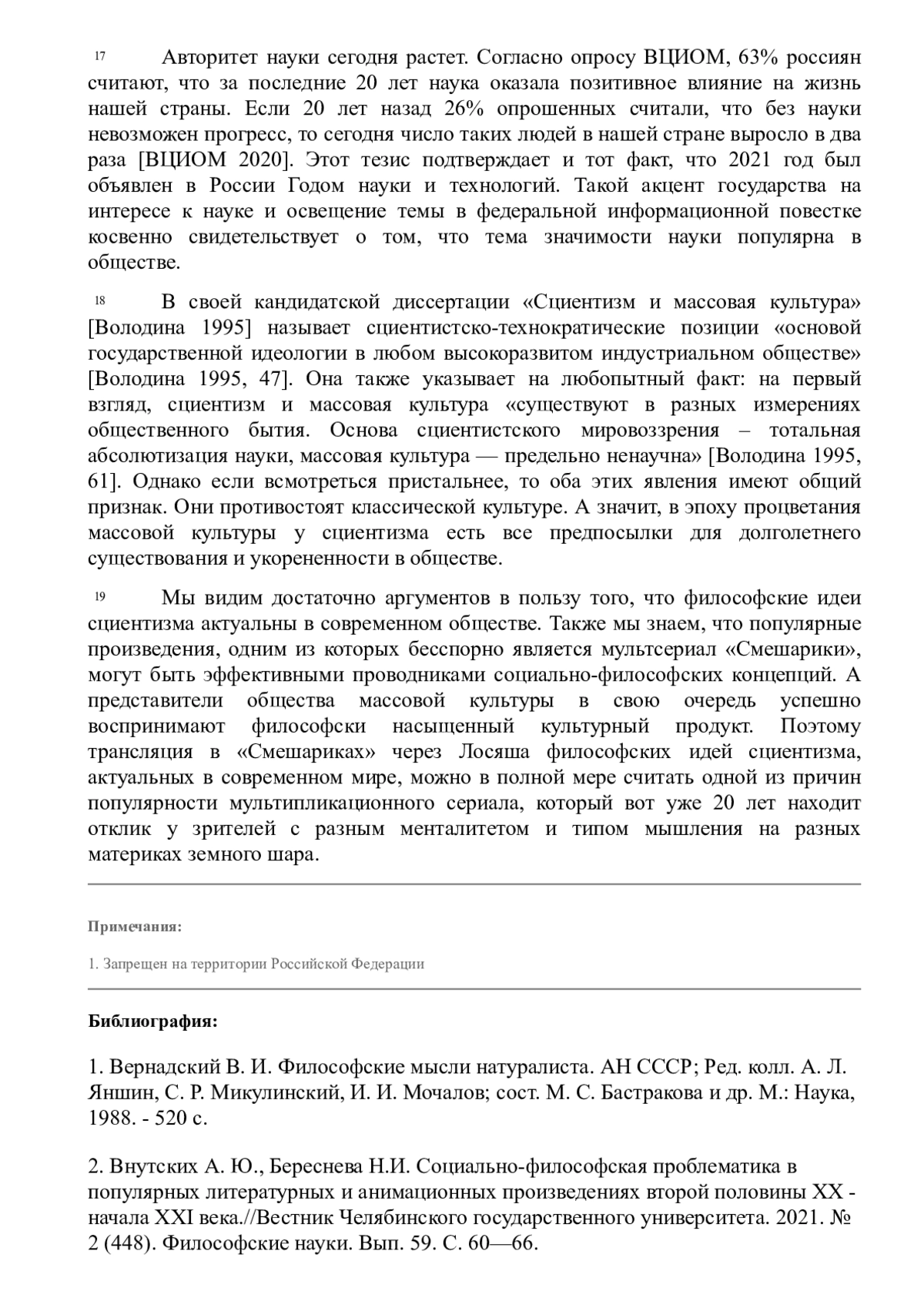 2. Внутских А. Ю., Береснева Н.И. Социально-философская проблематика в популярных литературных и анимационных произведениях второй половины XX - начала XXI века.//Вестник Челябинского государственного университета. 2021. № 2 (448). Философские науки. Вып. 59. С. 60-66.