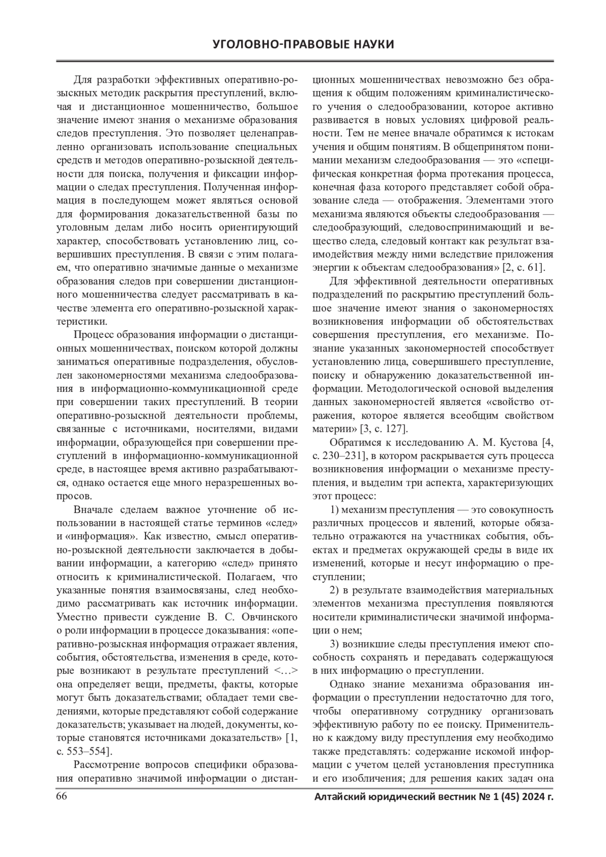 4. Кустов А. М. Криминалистика и механизм преступления. М.: Изд-во Московского психолого-социального института; Воронеж: МОДЭК, 2002. EDN: YYXFFZ