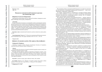 Исследования в области экономической безопасности государства и регионов как неотъемлемой составляющей национальной безопасности — одно из востребованных современных направлений.