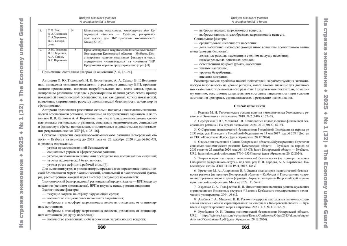 10. Котова Т. В. Обеспечение экономической безопасности региона (на примере Кемеровской области – Кузбасс) // Вестник ТОГУ. 2024. № 4 (75). С. 152–165.